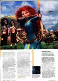 Set in medieval Scotland, Pixars latest feature film is a testament to the ability of Pixar's scientists and artists to create a tactile world. Brave's landscape is lush, lead character Merida's long mop of curly hair is as wild as she is, and all the characters wear costumes with more layers and detail than in any previous film. Simulation is a star of the film, too.