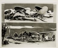 (Disneyland, 1954) An extremely rare prospectus packet for Disneyland, dated September 3, 1954. The prospectus, titled "The Disneyland Story", was used to educate potential investors as to what they might expect at the park when it opened the following year. The document includes overviews of the lands in the park as well as early descriptions of some of the planned attractions of the park, including some that would never get made. The packet comes in a binder marked "Disneyland" in the lower-right corner. The binder contains (26) 8"x 10" black and white photos of concept art, maps, and various scenes which help to convey the descriptions found in the document. This prospectus packet provides an incredibly rare and seldom seen glimpse into Walt Disney's vision for his park almost a year before it opened.]