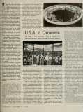 In their most spectacular form, the movies at the United States Pavilion will literally surround visitors. A specially-built theater adjoining the main exhibit area will come as close as possible — without crossing any oceans — to taking visitors on a tour of the United States. Circarama, Walt Disney's striking "movies in the round" technique, will project viewers into America's cities, factories, wheat fields, and even its supermarkets.