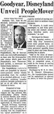 Called the Goodyear PeopleMover, the 62 four-car units can carry 4,885 passengers an hour over the threequarter mile course which goes thru Disneyland’s new Tomorrowland section, a showcase for United States industry.