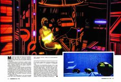 He is doing this in collaboration with a few old-school animators and a gaggle of whiz-kids recently out of Cal Arts (California Institute of Art, Valencia), the animation and film school set up by Disney. Since graduation these new-breed animators have been honing their skills at the Disney studio on the corner of Dopey Drive and Mickey Avenue; and now those skills are to be tested on Tron, a story conceived by Steven Lisberger, visualized and storyboarded by futuristic industrial designer Syd Mead, comic artist Jean “Moebius” Giraud and high-tech commercial artist Peter Lloyd. Whiz-kid animators, animation choreographers and technobrats include Jerry Reese, Bill Croyer, Rick Heinrichs and Tim Burton – to name a few among hundreds.