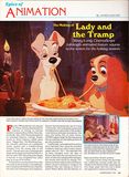For the 1955 production of Lady and the Tramp, Disney abandoned the practice of relying on famous children’s classics(Snow White, Pinocchio, Cinderella, Alice, Peter Pan) as the basis for its animated features. Instead, Disney turned to Ward Greene's raffish short story, “Happy Dan, The Whistling Dog,” the romantic adventure of a pedigreed cocker spaniel and a freedom-loving mongrel from the wrong side of the tracks. Though early story evelopment began at the studio during World War Il, it was not until 1951 that production began in earnest. It was completed four years later at a cost of $4 million.