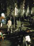 The film opens with a laser and explosion filled space chase. Captain EO soon finds himself skimming the surface (a la the trench sequence in Star Wars) of a trash strewn, colorless planet inhabited by a collection of suitably grim black-and-white nasties. They are confronted by the Supreme Leader (Houston), who hangs batlike from the ceiling and looks like a Gigeresque version of the Wicked Witch of the West, Captain EO and his crew defeat the forces of darkness using the power of music, dance and light to transform the evil denizens into a magical world of color and happiness. Animation buffs will appreciate the similarity of concept to the old Van Buren animated short "The Sunshine Makers"— a cult classic.