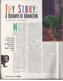 Walt Disney Feature Animation will make film history this fall when it releases the first full-length, all-digital movie; the first animation created entirely by artists using 3D computer graphics tools. The movie, Toy Story, produced and created by Pixar Animation Studios (Pt. Richmond, CA) and directed by Pixar's Academy-Award-winning John Lasseter, stars Tom Hanks as the voice of Woody, a pull-string cowboy doll, and Tim Allen as the voice of Buzz Lightyear, a space-ranger toy, with music by Grammy-award-winning Randy Newman.