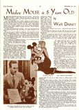 Those five years have been eventful. Mickey has grown from an obscure, perky little fellow, unwanted in Hollywood, into a full-blown star with his own very active studio, and with a fame which spreads around the whole world. He is, in his own right, a fully fledged producer-star—a fellow member of the United Artists Corporation, which includes Mary Pickford, Douglas Fairbanks, Charlie Chaplin, and Gloria Swanson.