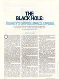 A budget of $17.5 million makes The Black Hole the most costly film in Disney history. Never before has virtually every stage, shop and facility on the Disney lot been devoted to a single project. More importantly, for the first time in its history, the studio is taking a back seat to the production itself. Company letterheads say The Black Hole, not Walt Disney Productions, and it is rumored that this will hold true even for ad posters and campaigns. The entire cast is made up of actors not previously associated with the Disney G-rated line of products. And it seems likely that The Black Hole will be rated PG, a startling departure for the “G” oriented studio. Disney spokesmen claim, “We are making this one for adults.”