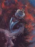The setting for The Black Hole is the distant future, when space has proved to be a realm of limitless resources. A story unfolds involving a deep-space probe to the vicinity of a black hole-where explorers encounter a space habitat of gargantuan proportions overlooked by a Captain-Nemo-type ambivalent villain. The space czar maintains an army of marauding robots and harbors peculiar designs on the universe. During the film’s climax, the Earth probe must find a way to cooperate with the dangerous man, in order to forestall their being pulled irreversibly into the dreaded black hole. Disaster occurs despite their efforts, and only a handful of people and robots make a daring escape.