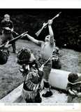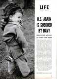 This pleased 3-year-old, who sees himself as the King of the Wild Frontier, belongs to an army of Americans which has had a sudden and shattering impact on the nation's home life. He is a Davy Crockett fan and is a brother-in-arms of almost every American of both sexes from the age of 2 to 12. Through a recent Walt Disney TV program he made the acquaintance of the frontier scout, Davy Crockett. Since then he has been raising indoor bedlam in his scramble to reach the television set and outdoor bedlam as he whoops and hollers in the backyard. Being a stickler for details, he insists on toting at least one Crockett gun and wearing a coonskin hat, sometimes to bed. The Crockett craze, unexpected even by the watchful Walt Disney, has produced a corresponding frenzy in commercial circles. Dozens of manufacturers are hustling to turn out more than 200 items, from baby shoes to wallets, which might conceivably be connected with Crockett's life. By June they will sell to the retail tune of $100 million — just about the largest merchandising feat of its kind. Mean-while, Walt Disney has made a full-length movie out of his TV film and booked it into 950 theaters for its opening month of June. Sixteen versions of the Crockett ballad, which was introduced on the TV show, have been recorded, not counting the Davy Crockett Mambo. But the true Crockett fan is busy with his own forms of hero worship. He kills imaginary Mexicans, shoots imaginary bears and adds his own verses to the Crockett ballad, […]