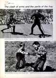 Zorro, the rich caballero who acts like a lazy fellow by day but at night puts on a mask and rides forth to help the poor, has been a film and fiction hero for 40 years. His current revival was brought on by Walt Disney, who introduced Zorro in an ABC-TV series last October for a 39-week run, kept him going this summer with 13 weeks of repeats, and starts him out in n new 39-week cycle this fall. Zorro. with his derring-do and do-gooding, has all the stuff a childhood hero is made of, being a combination of all three Musketeers and the Lone Ranger. Disney has added fine touches of excitement, with zigzag flashes of lightning making Zs in the sky, and always a pulse-stirring clatter of hoofs and ringing swords. Inevitably, he also sells Zorro capes, masks, hats and plastic swords tipped with chalk so the kids can write Z on the kitchen floor. […]