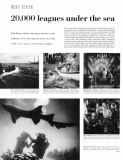 The crystal-ball imagination of French novelist Jules Verne and the production genius of Walt Disney combine to make 20,000 Leagues Under the Sea a spellbinding show. In his novel, published in 1869, Verne anticipated an electrically propelled submarine, a self-contained diving suit and ingenious scientific uses of the sea's resources to benefit mankind. Disney makes full use of these ideas, goes Verne a step further. The maelstrom which destroyed Verne's submarine becomes on the screen the ominously familiar mushroom explosion. And inventor Captain Nemo is a still madder genius bent on vengeance on old enemies. The film, directed by Richard Fleischer, is pictorially fascinating and will enthrall youngsters and adults alike.