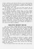 The cost of creating a Mickey Mouse reel of one thousand feet is perhaps greater, per foot of film, that that of making a full-length feature picture. This is taking into account the salaries of living stars, stage settings, and studio production costs. Between eight and ten thousand drawings, produced entirely by hand, are required for each film, and about eight weeks are spent between the time the idea is first accepted and the finished film reaches the United Artists distributing office. The production system is “staggered” however, so that a new film, either Mickey Mouse or a Silly Symphony is ready every two weeks.