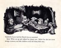 [This] version [is] the rerelease of the book by Grosset and Dunlap done in 1938. […] The book contains some B&W screen images from the movie, but more than half of it is made up of illustrations by Gustaf Tenggren, the studio artist/designer so responsible for some of the film’s look. He joined the studio in 1936 and had involvement in finishing the movie and giving it the Old World look that it has. Ferdinand Horvath and Albert Hurter were already at the studio when he joined and had equally strong contribution in the design. Tenggren was principal in the publicity materials done for the movie.