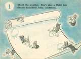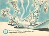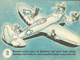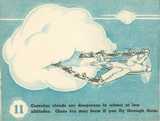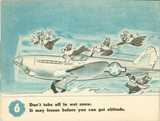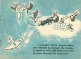 In this book for the first time is pictured a close relative of the Gremlin, the ‘Spandule’. These little fellows inhabit the air space above 30,000 feet except in the winter time, when they come down to lower altitudes and have been known to play around on the ground. Although not mean at heart, these little guys are forced by their very nature to do a lot of things to get a pilot in trouble. Whenever an airplane enters their domain they pounce aboard. They like to test a guy out. If he is on his toes they probably won’t bother him much, but if he looks sound asleep or a little thick between the ears they are almost sure to plaster his wings with ice, load down his propeller, and do all sorts of tricks that can be real serious. If you know where to look for Spandules and if you keep a close watch for the first evidence of their handiwork, you can usually avoid a run-in with them. This book will help you do that. The life-like pictures of Spandules which appear in this book were created by Walt Disney at the invitation of the Flight Control Command.