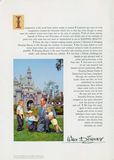And now as a result of our vast research and motion picture production efforts, Sleeping Beauty Castle in Disneyland has been completed. Through the medium of key scenes from our film, we have symbolized its timeless enchantments. Here behind these castle walls, in these towers and courts, may be seen the joys and tears of the beautiful Princess Aurora, mingled in her great adventure with the powers of good and evil.