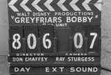 Edinburgh Castle grounds, people in costume; a pipe band march outside, members of the press take photographs of a small dog, "Bobby". A movie camera films proceedings; band leader plays with Bobby; extras waiting, in period dress; Bobby follows band leader at head of the band; an extra is revived after having fainted?; takes continue, c/u movie camera. c/u slate, reads " Walt Disney Productions, Greyfriars Bobby. Director Don Chaffey, Camera Ray Sturgess"