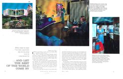 Now, to live up to its name and to outpace the marching calendar, the revolutionary plastics structure has once again been restyled for the times ahead. Furnishings and equipment, as well as the house itself, are essentially 100 per cent man-made; hardly a natural material appears in anything like its original state anywhere in the building.