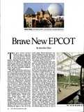 The 200-acre futureville called EPCOT Center, the largest private construction job in history (the second-largest was the rest of Walt Disney World. three miles away), sprouts out of the flat land near Orlando, as abrupt as its name, shimmery as a mirage under the Florida sun. EPCOT - for Experimental Prototype Community of Tomorrow - is Walt Disney Productions' billion-dollar high-tech Oz, meant to make the visitor’s jaw drop. At the entrance is the aluminum geodesic sphere, a mammoth silver-coated thistle called “Spaceship Earth." Behind it, in a broad circle, are the four other pavilions of “Future World": Exxon's triangular, silver “Universe of Energy"; General Motors’ “World of Motion," shaped like a giant, silver-wrapped tire; Kraft’s “The Land," topped by a cone-shaped glass hat; Kodak’s “Journey into Imagination," two glass pyramids with the tops sliced off. Behind Future World is a man-made lagoon, as still as if it were frozen; surrounding the lagoon is the rest of the world, called "World Showcase": replicas of buildings from nine nations, including a five-story pagoda, the Doge's Palace, and a hundred-foot Eiffel Tower. Walt, as the Disney executives are forever saying, would have loved it. […]