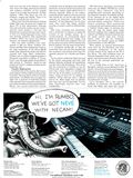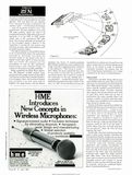 Disneyland and Walt Disney World have used wireless mikes for years. More recently, they have incorporated such technology into their "Main Street Parade." This was done to solve a specific problem: synchronization of music between floats. Formerly, separate tape players and sound systems were used on each float. Since there was no way to synchronize the music between floats, this caused a conflict of sound, especially when two floats were equidistant from a particular point along the parade route. Disney technicians solved the problem by feeding individual synchronized music tracks to several transmitters - brass to one transmitter, rhythm track to another, strings to a third, and so on (Figure 2). Each transmitter was operating on a separate radio frequency, sending its track to a receiver and sound system mounted on each float. In this way, a fully-synchronized music program could be fed to all the floats in unison. More than one curbside spectator has wondered, "How do they all play together like that ?"