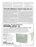 The most sophisticated audio-video playback system in the world is not located in New York or Hollywood. It's in Florida, just south of Orlando, at the new EPCOT (Experimental Prototype Community of Tomorrow) Center at Walt Disney World. Visitors to the 260-acre complex are constantly bombarded by sound and images – from soaring pseudo-Korngold movie music, to the bloops and bleeps of a "How-it-Works" computer show; from full-color 3-D movies, to a stair-climbing Audio-Animatronics figure of Ben Franklin. But the assault on the senses here is very different from the random cacophony of a typical amusement park. Instead, everything the visitor sees and hears is carefully predetermined and controlled by a large network of computers called EPCOT Central, located in a building in the Future World section of the park known as Communicore East. There are 16 major structures at EPCOT (with several more planned for the near future), divided into two areas: Future World, whose buildings cluster around a small area close to the entrance gate, and World Showcase, which surrounds a 40-acre lagoon. Each of the buildings contains from one to several dozen audio /visual presentations, which range in complexity from simple audio playback systems, to elaborate multimedia theatrical events. Program Sources It doesn't take long before the visitor realizes that very little of the entertainment to be had here is live – everything, from the "actors" at American Adventure, to the bird calls at Canada, is canned. But what a can it is. At the heart of this audio video extravaganza is a custom mainframe computer made by Sperry. The computer is surrounded by, and controls, literally hundreds of video and audio playback units at EPCOT Central, while its electronic tentacles reach out to control dozens more devices spread out around the grounds. There is an astounding amount of program material stored on various media at EPCOT Central. (Although there is a Neve- and Ampex-equipped production studio in place at the nearby Magic Kingdom, all of EPCOT's program material was produced elsewhere, as detailed in an accompanying sidebar.) There are 22 channels of background music, each emanating from its own L.J. Scully 14-inch playback deck, and routed to speakers concealed in the grounds, trees, and buildings via a 70-volt distribution system. Each area of the park has its own background music – 30 minutes of it – which was composed and recorded expressly for this application. […]