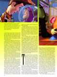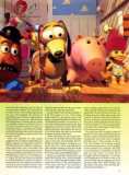 Though the final screenplay is credited to Joss Whedon—the young tyro best known for the final rewrite of Speed and a forthcoming Aliens sequel—the films story was developed in-house by Pixar and, like Pixars short films Tin Toy and Knickknack, reflects Lasseters own fascination with the secret lives of playthings. "In all the Pixar films, the characters are alive to me, in my mind," the director confides. "I almost think of them more as employees here at Pixar than as Pixar creations. I love toys, Im a big toy collector, love playing with toys with my kids. I think animators in general tend to have a fondness for them.