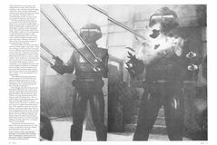 Hale describes for us some of the effects his unit had worked on: ”Of course there are the laser-beam effects, but there are also all the engine exhaust shots which should look like hot gas blasting out and the smaller booster engines on the sides of the craft. Then there are electrical effects, such as when a crewman is killed and thrown onto the reactor. Or little animation effects, such as the ESP effect in the robot's eyes when he communicates with Kate McCrae. Or subtle effects, such as the effect of the reactor engine working, which we animated as a gentle, glowing red."
