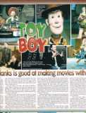 Toy Story 2. That megahit sequel is now in theaters with Hanks back in the saddle as Woody. "I wasnt surprised, because I saw it just like everybody else," Hanks notes. "Providing a voice is just like digging raw material. You go in there and say your lines enough different ways so that the geniuses [at Pixar and Disney] can pick out which one to use. So, when I sat there and saw Toy Story for the first time, I couldnt put into words why it was as special as it was. But the writing was great, the execution was fantastic and it was actually a new art form.
