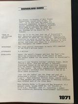 Diary of Disneyland for years 1955-1981 For each year the following topics are presented: