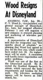 A representative of Disneyland said that the resignation was "five months ahead of schedule," explaining that Wood had agreed to stay for the first year, which would have ended July 16. No replacement will be made. A committee will handle future organization and policy problems.
