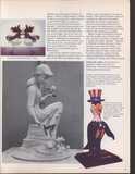 As I enter Blaine Gibson's studio my first impression is of light. Gibson designed this studio himself, and clean north light fills it from skylights and side windows. The walls are lined with pictures and shelves are filled with sculptures. A marvelous three-foot fiberglass statue of Will Rogers occupies a corner. "This was my design for an Audio Animatronic figure for EPCOTs American Adventure but they decided not to use him. However, they did develop Mark Twain, says Blaine as he points to a similar figure that evolved into a magical moving actor in the same Disney World show. The life-size head of President Bush, John Wayne and other notables are perched on table tops. Blaine lobs James Cagneys vinyl plastic head to me as if it were a basketball. It looks so real that I un- I consciously expect it to be soft. "When I do a head, I dont stop until I see that the character looks alive," he tells me. If there is one unifying factor in all of Blaine Gibsons work it is the unmistakable feeling of vitality.